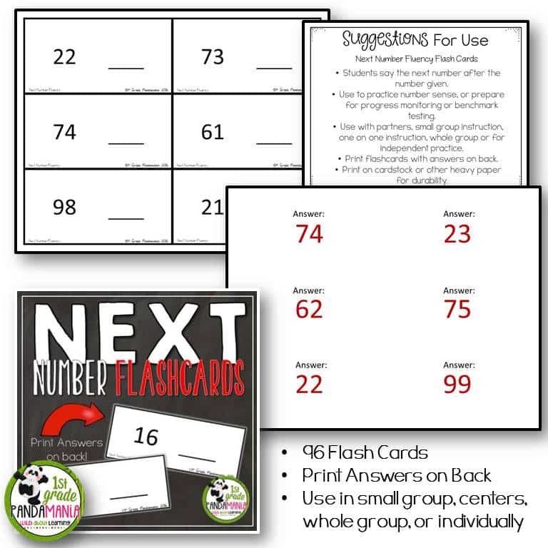These fun flashcard number sense activities help students become more fluent with number identification (FREE), missing numbers, larger numbers (advanced quantity discrimination), and next number math skills. Use these flashcards to prepare for DIBELS, and other math progress monitoring and benchmarking tests, or use them with RTI and intervention groups.