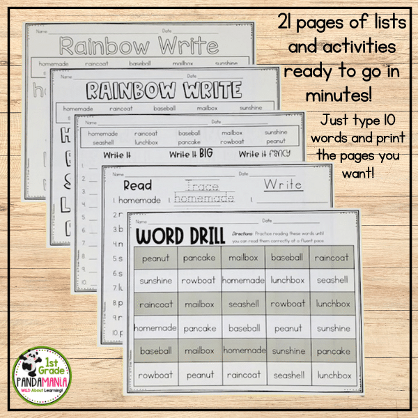 It is a breeze to create activities for the year with our Editable Sight Word and Spelling Activities for any List.