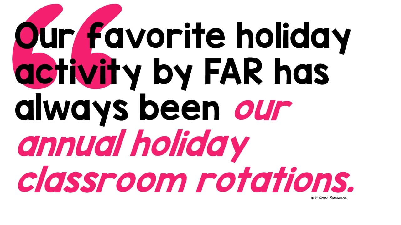 Our 1st grade team originally created class rotations just for the Christmas holidays. The rotating activities were such a hit with our students and parents, that we decided to use a rotation system for other holidays! They work for any holiday where your students lose focus and need short periods with engaging activities:
