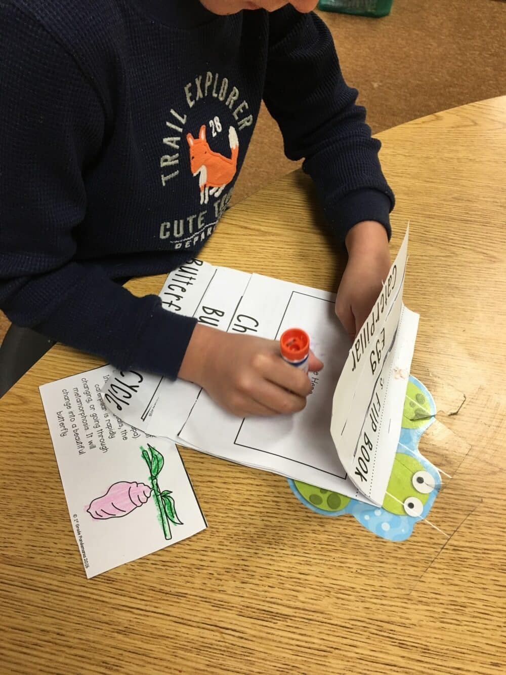 Each flap in the book highlights a part of the plant or animal’s life cycle. To assemble, students color, cut, glue, and staple their books together. Once they have assembled one flip book, most students can then complete another on their own!