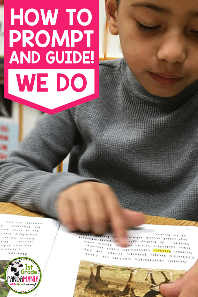 Most of us have the “I Do” and the “You Do” down just fine. It’s the “We Do” where the teacher needs to guide without too much teacher voice. We can support students without giving it all away by backing off a little and guiding them while allowing them to practice and apply a skill. That way you can jump in only when needed. Use one or two-word prompts without long explanations…leaving students to do all the work!