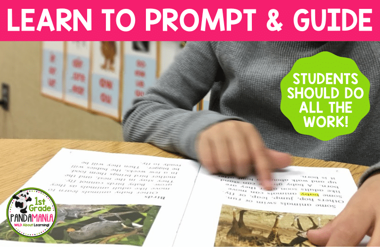 For example: When students are sounding out a word, the teacher may prompt them with the word “sound.” This one-word prompt encourages students to attack the word sound by sound and the teacher’s voice is mostly off so students are doing all the thinking and the work to apply what they have learned.