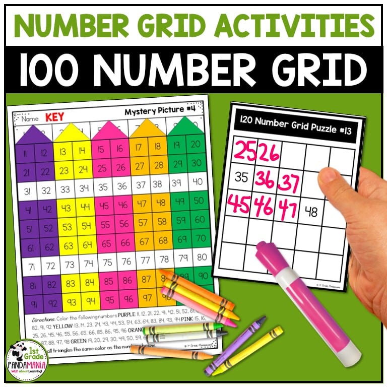 100 charts and 100 chart numbers grid puzzles, activities, and games build student skills in number sense, number sequencing, counting, missing numbers, next number, counting back, counting forward, and recognizing numerals from 1 to 100. Perfect for the 100th Day of School! Challenge and engage your students with various levels of 100 chart numbers activities.