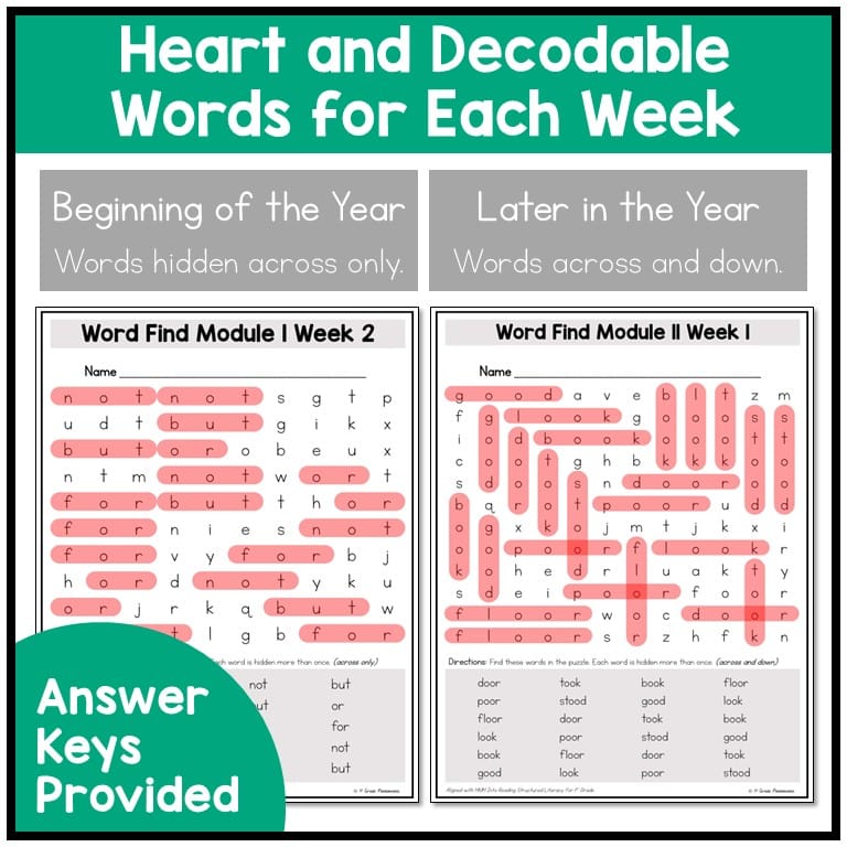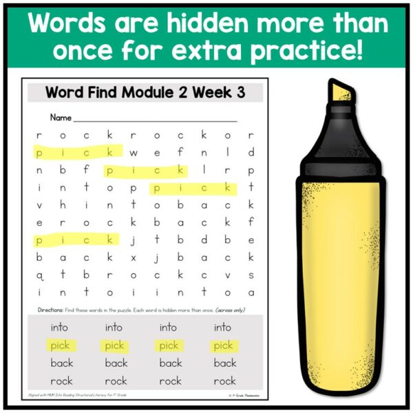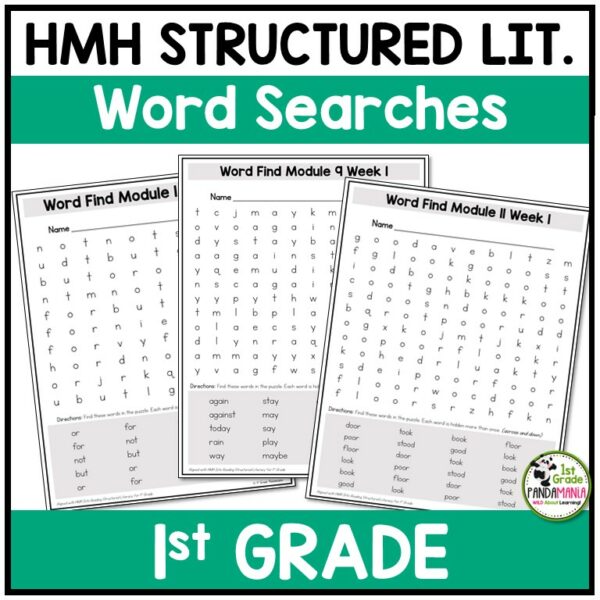 This HMH Into Reading Structured Literacy 1st Grade word search (high-frequency words, irregular words, decodable words) activity is a resource that your students will use all year long! Included are all HMH Into Reading 1st Grade Structured Literacy irregular and decodable words. These words are organized by modules 1-12. Print and organize by modules and weekly lessons (numbers are printed on each).