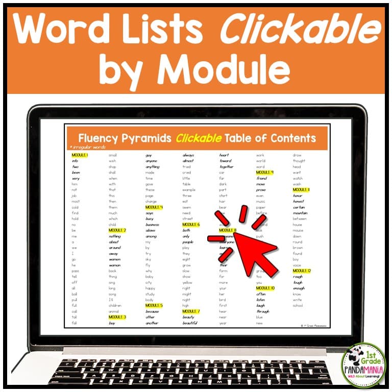 Click and Go! Table of Contents Included! These words are organized by modules and weeks. Print and file by the weekly lesson. Just grab and go!