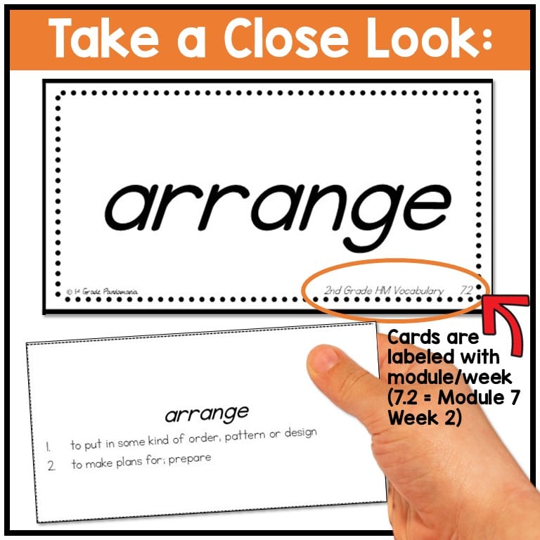 Post these 240 easy to print, laminate and cut HMH Into Reading Structured Literacy 2nd grade vocabulary words with definitions on the back for your word wall. Put them on rings for students to practice daily. Use them as flashcards in small group, whole group, interventions, and send home for practice. Each card is 2.8″ x 5.45″ in size. These words are organized by modules—print and file by the weekly lesson.