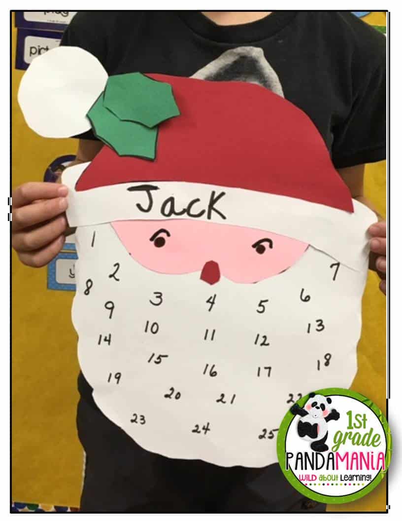 Create this Santa Advent Calendar at the beginning of December and have your students add a cotton ball to Santa’s beard each day. When his beard is full, it’s Christmas!