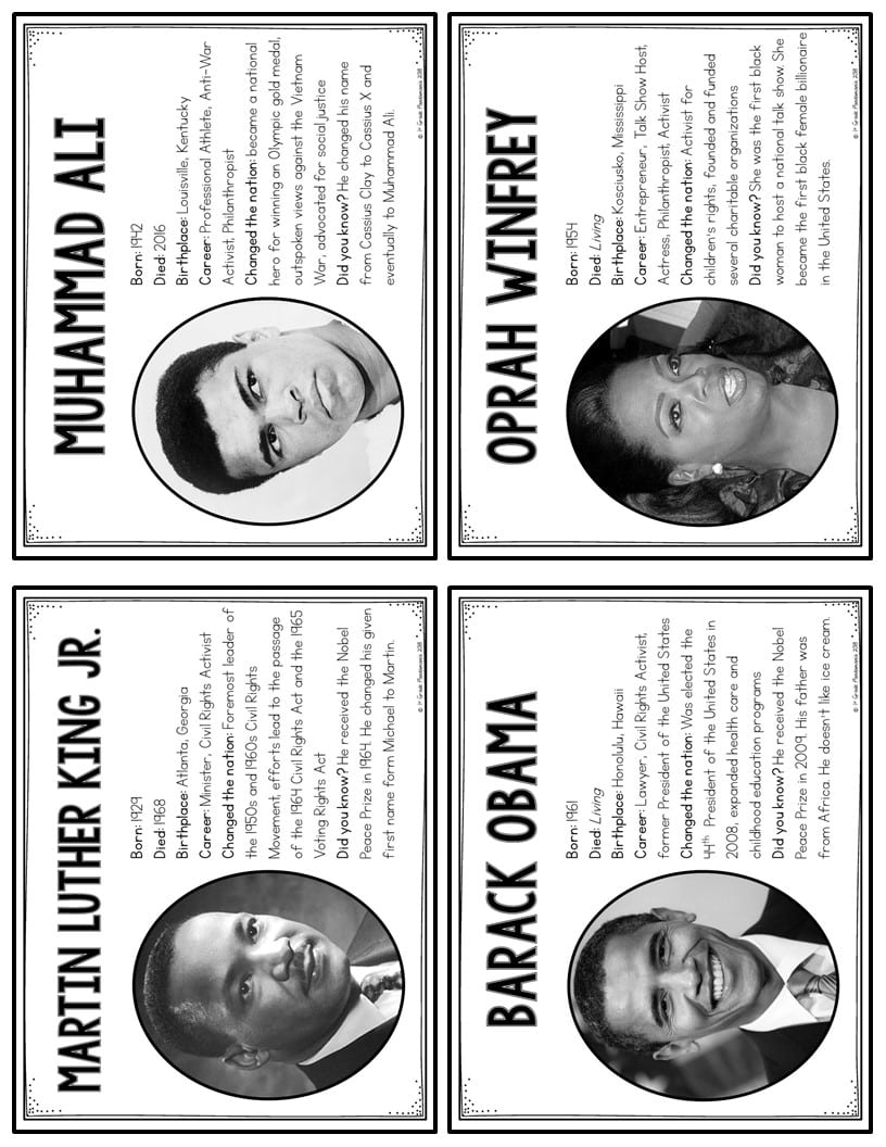 Black History Month Bulletin Board Posters Biographies Trading Card