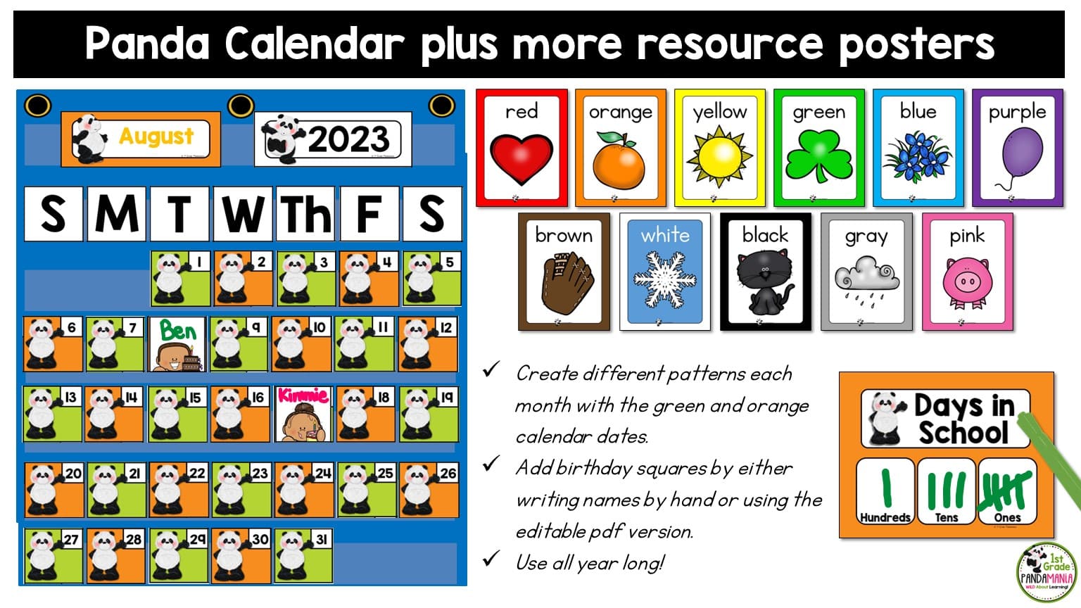 - Calendar with numbers in 3 colors to make different patterns each month, month headers, special days, Days of School posters in 3 choices, days of the week headers, years to 2025