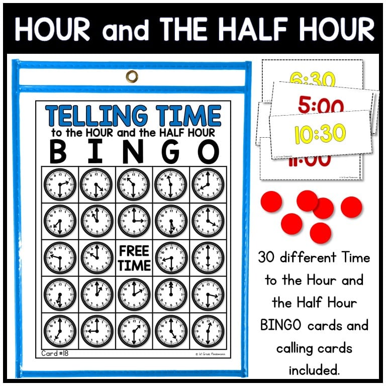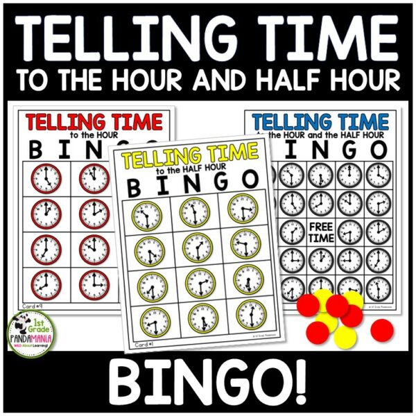 Use these telling BINGO time to the hour and time to the half-hour games during whole group, interventions, and during guided math.