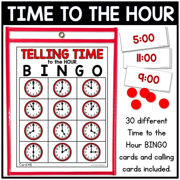 - 30 Clock Bingo time to the hour game cards and calling cards