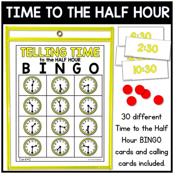 - 30 Clock Bingo time to the half-hour game cards and calling cards