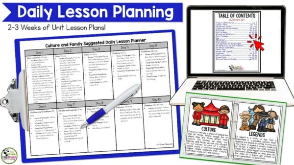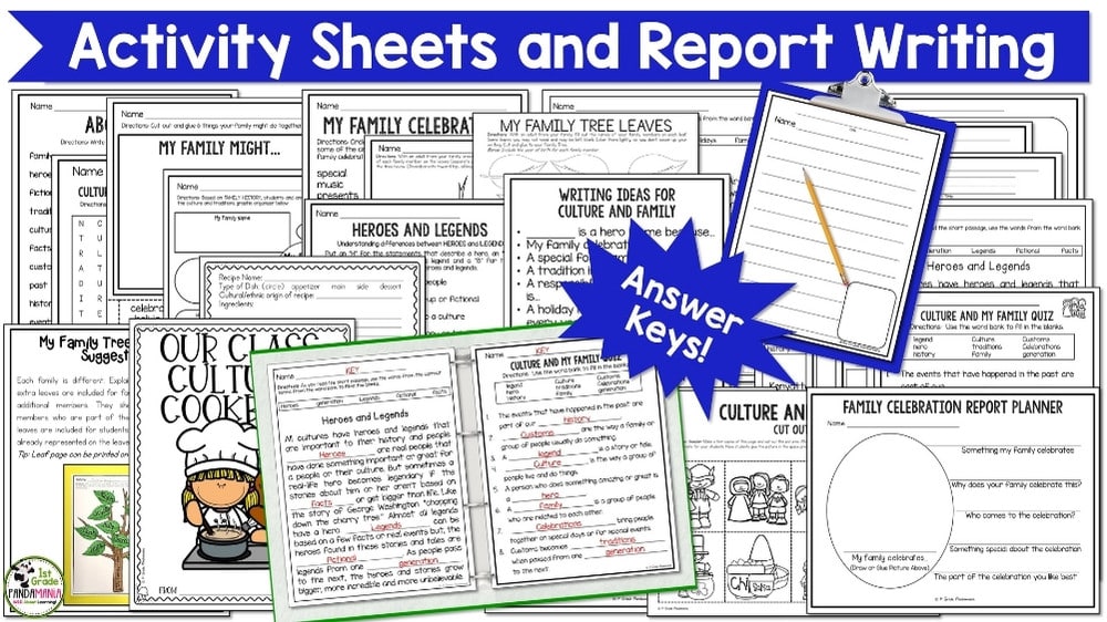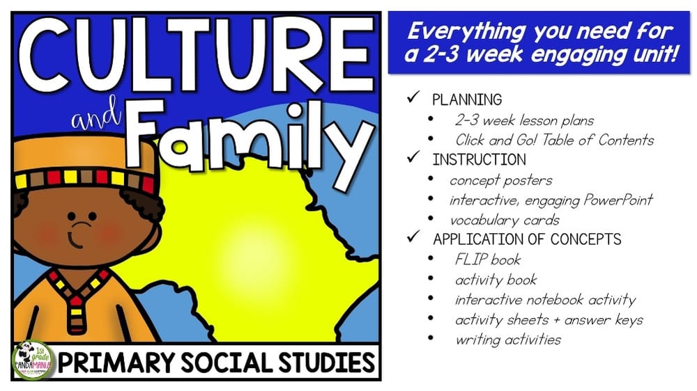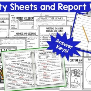 This comprehensive culture activities unit is aligned with the national social studies standards. It includes the topics of customs, traditions, family, culture, celebrations, heroes, and legends.