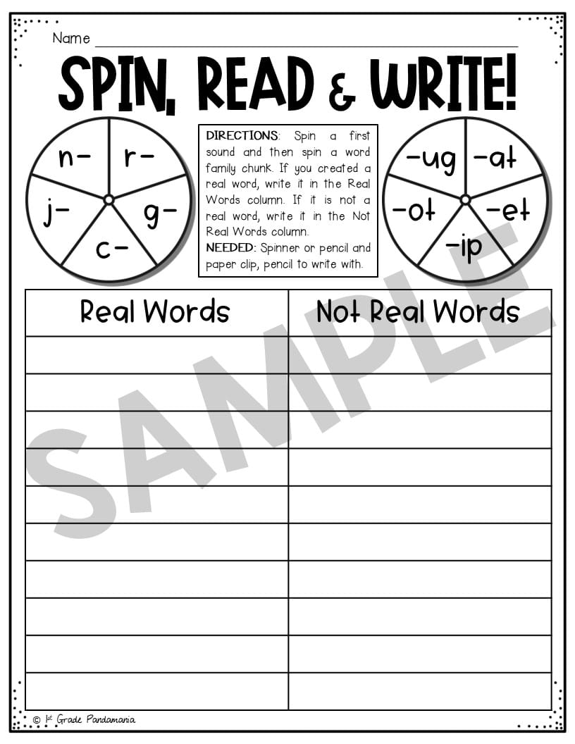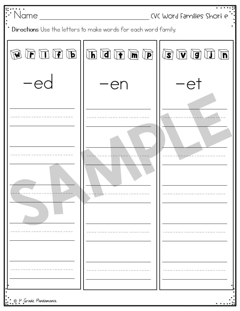 CVC Word Families Included: