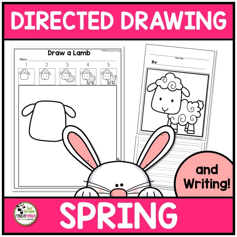 Spring Directed Drawings included: butterfly, duckling, rainbow, rain cloud, lamb, kite, ladybug, flower, robin, and snail