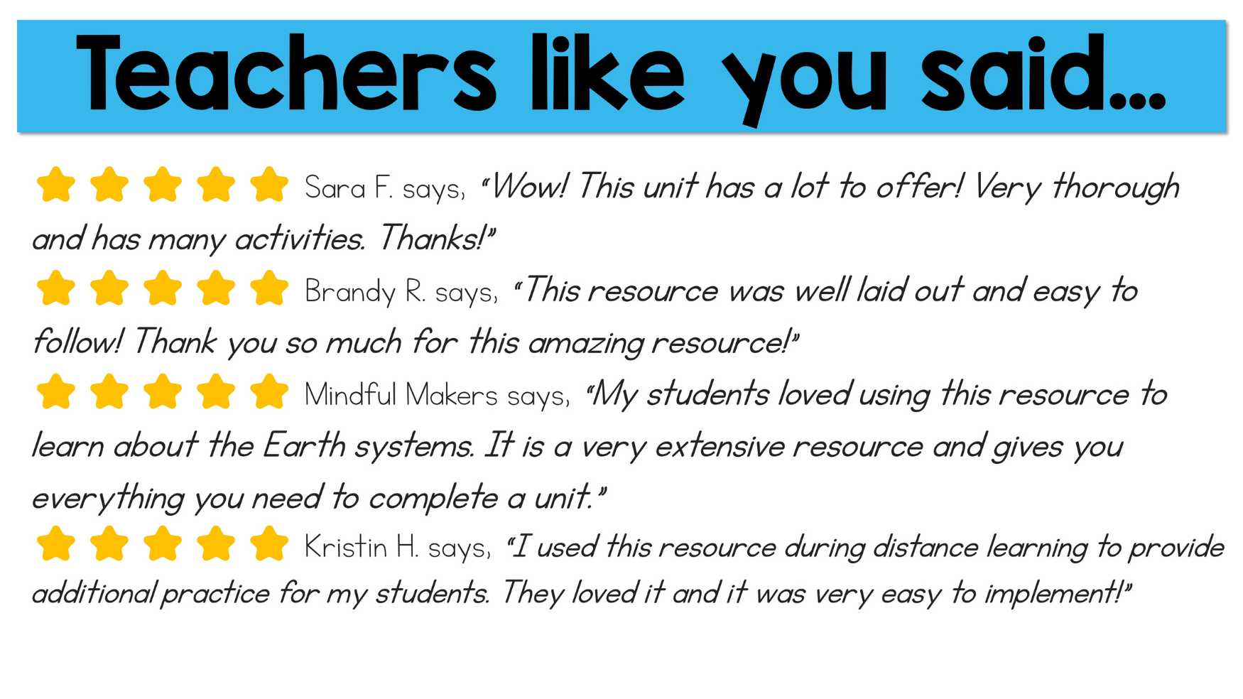 ⭐️⭐️⭐️⭐️⭐️ Mindful Makers says, “My students loved using this resource to learn about the Earth systems. It is a very extensive resource and gives you everything you need to complete a unit.”