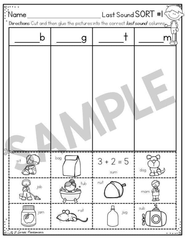 These Targeted Phonics end sound phonics activities will keep your students practicing their phonemic awareness final sound skills all year long. Use for morning work, in an interactive notebook, as a Must Do or in a center during guided reading time. Many activity sheets are leveled (#1, #2 etc.) for differentiated practice. There are 30 pages of fun and engaging ending sound activities! Some are paper/pencil, coloring and others are cut and paste matching and could be used in an interactive notebook for phonics. Perfect for K-2.
