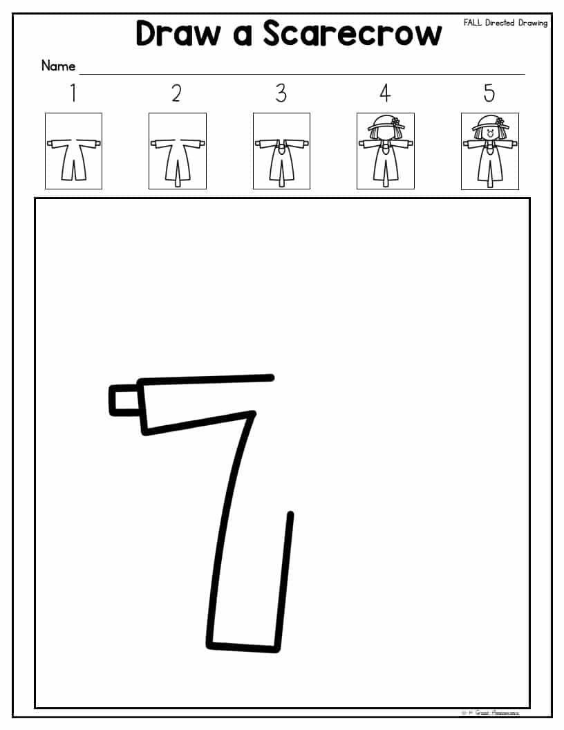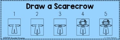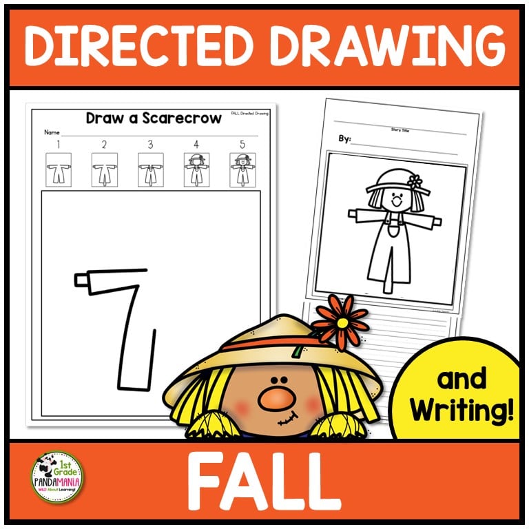 Fall Directed Drawings included:acorn, tree, apple, mouse, pumpkin, scarecrow, squirrel, sunflower, and cob of corn