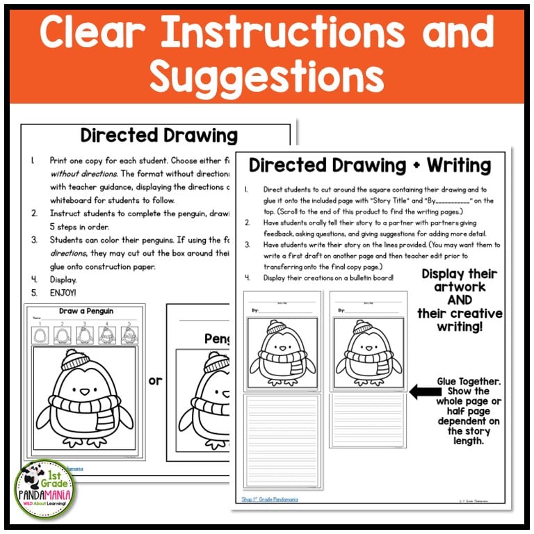 - ready-to-display drawing sheets to use with teacher direction or center direction cards