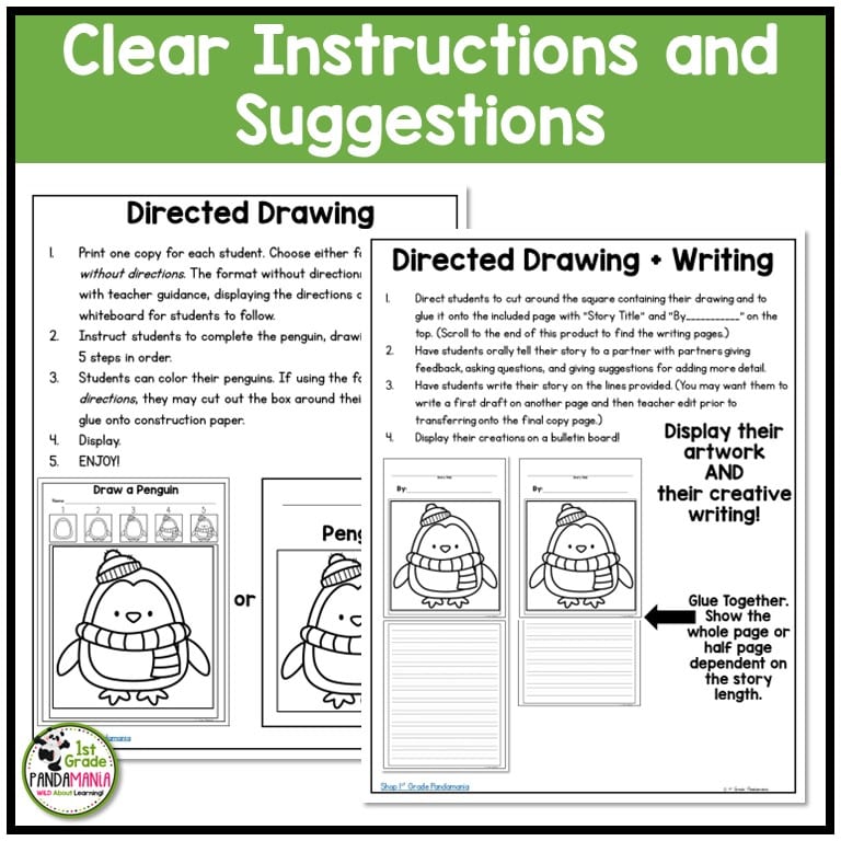 - ready-to-display drawing sheets to use with teacher direction or center direction cards
