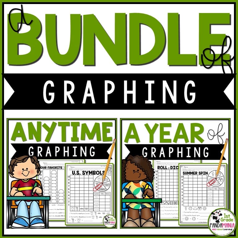 1st graders love working on these seasonal graphing activity worksheets all through the year. These graphs practice a variety of instructional strategies including basic pictograph, pie charts, bar graphing, tallies, counting, sorting, adding, subtracting, comparing and more!