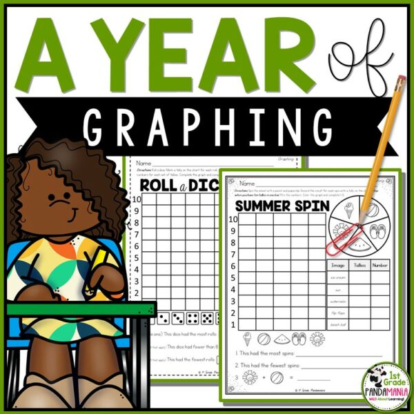 1st graders love working on these seasonal graphing activity worksheets (US and Canadian/UK Versions) all through the year. Use them for math centers, small group instruction and whole group math lessons. These graphs practice a variety of instructional strategies including basic pictograph and bar graphing, tallies, counting, sorting, adding, subtracting, comparing and more!