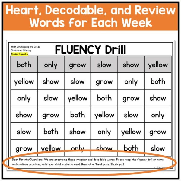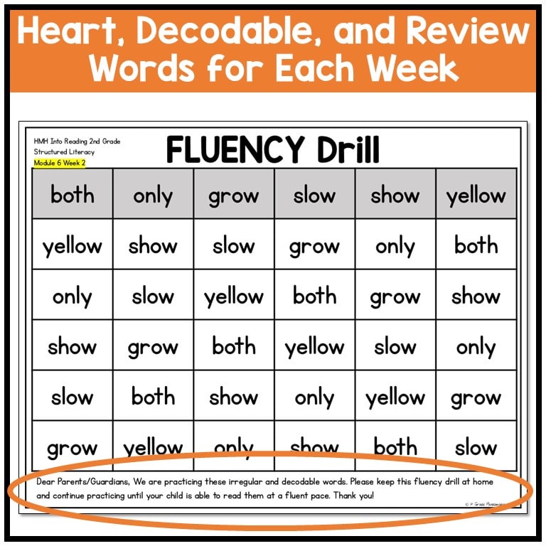 Use these HMH Into Reading 2nd Grade Structured Literacy fluency drills for 2 minutes daily in small group and send home for practice to build high frequency word fluency. With routine use, watch your students’ HMH Into Reading 2nd Grade irregular word and decodable word-fluency greatly improve! These words are organized by modules 1-12. The words are randomized on the drills so students are repeatedly reviewing their weekly words in random order. Print and file by the weekly lesson. Just grab and go!