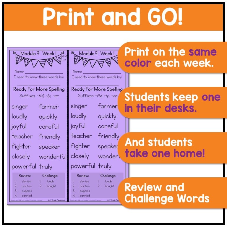 ⭐⭐⭐⭐⭐ These are great for us creating our spelling list without having to search for the words. They are an easy thing to send home when I’m doing 2 different lists. I have found these easy and very useful. — Andrea S.