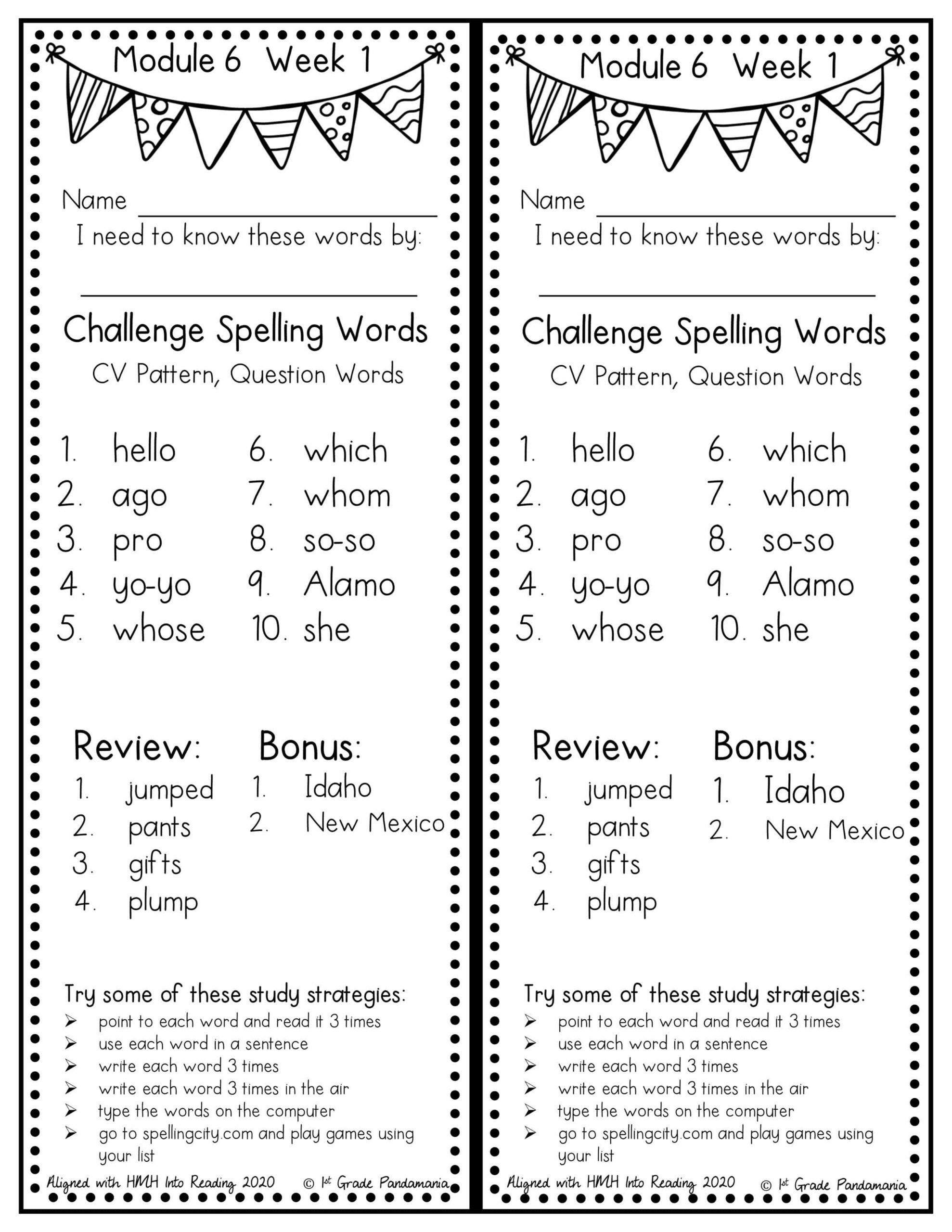 Please note: These 1st Grade Spelling Lists were prepared by 1st Grade Pandamania and have neither been developed, reviewed, nor endorsed by Houghton Mifflin Harcourt Publishing Company, publisher of the original HMH Into Reading work on which this material is based. Permission has been granted from HMH for 1st Grade Pandamania to use their curriculum to create this resource.
