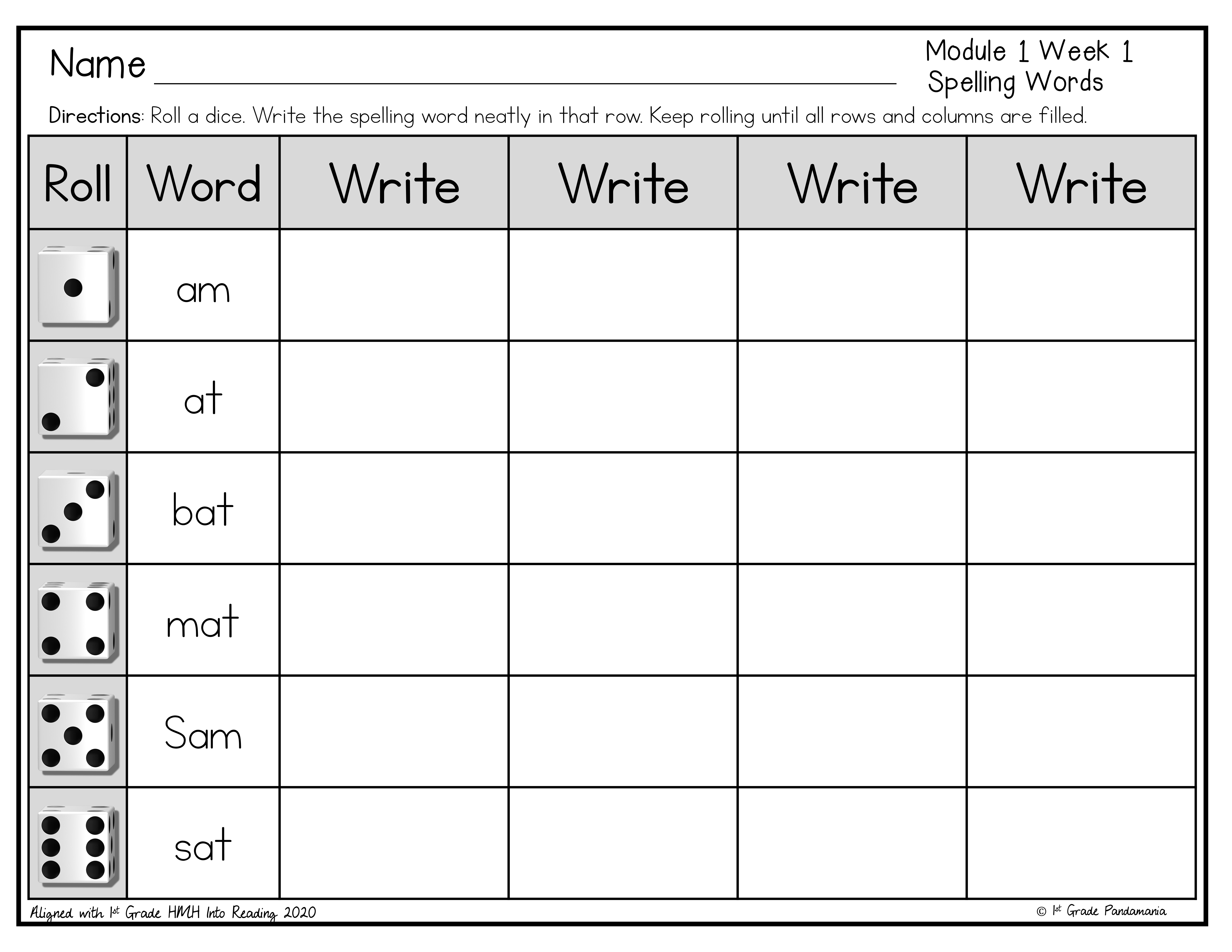 This spelling center is a resource that your students will use all year long! Included are all 1st-grade HMH Into Reading spelling words for your students to roll and write at centers to reinforce their weekly words. These words are organized by modules (1.1, 1.2, 1.3 through 12.3). Print and file by the weekly lesson. Just grab and go!