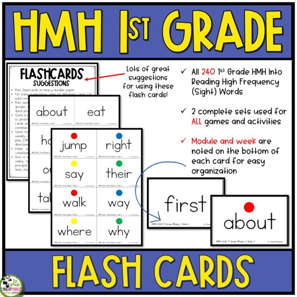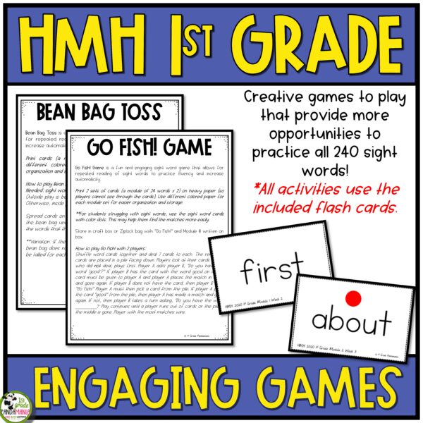 These sight word (high-frequency word) activities will be used all year long in reading and writing! Included are all 1st-grade HMH Into Reading sight words games on flashcards for your students to use in the included engaging games and activities. These words are organized by modules (1.1, 1.2, 1.3 through 12.3). Print and file by the weekly lesson. Just grab and go!
