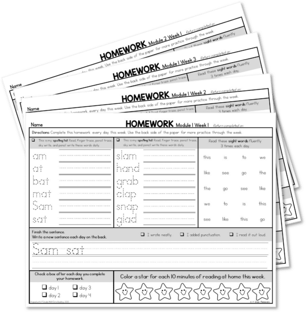 Students solidify their spelling and sight word fluency each week in an easy-to-practice and complete format. Also included are stars to color for each 10 minutes of at-home reading throughout the week.