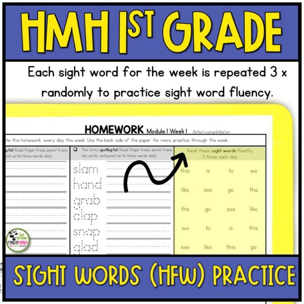 HMH Into Reading Sight Words and Spelling Homework 1st Grade 2020