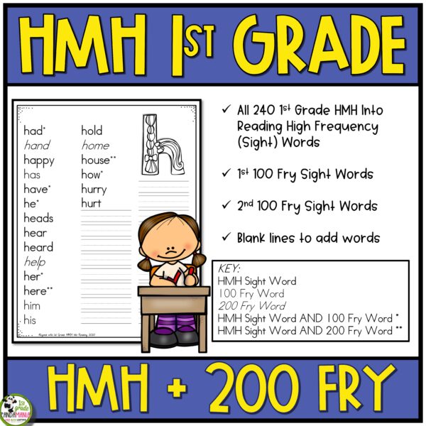 My Own First Grade Sight Words Dictionary is a resource that your students will use all year long in reading and writing! Included are all 1st-grade HMH Into Reading High-Frequency sight words as well as the first 200 Fry Sight Words. Just print back to back and staple into books! (An option to just include HMH sight words is also included.)