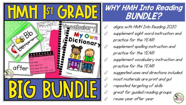 This first-grade all-year HMH Into Reading Bundle has everything you need, 800+ pages of our best products, to supplement your 1st Grade HMH Into Reading for a whole year of sight word, vocabulary and spelling instruction (copyright 2020).