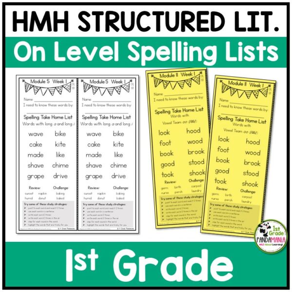 1st Grade Spelling Lists aligned with HMH Into Reading Structured Lit On Level