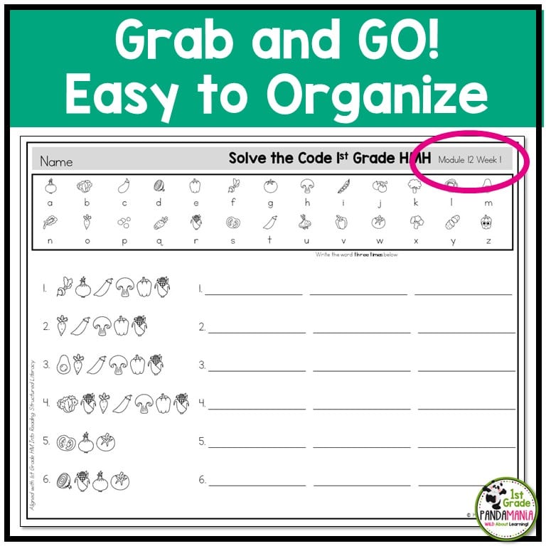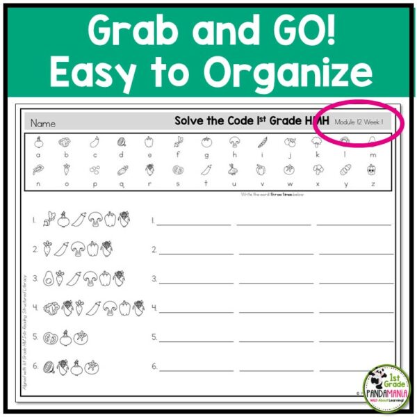 This Solve the Code center is a resource that your students will use all year long! Included are all HMH Into Reading Structured Literacy 1st grade irregular, decodable, and review words by module and week. These words are organized by modules 1-12. Print and organize by weekly lessons or modules. Just grab and GO! There is a different code for each of the 12 modules for students to solve.