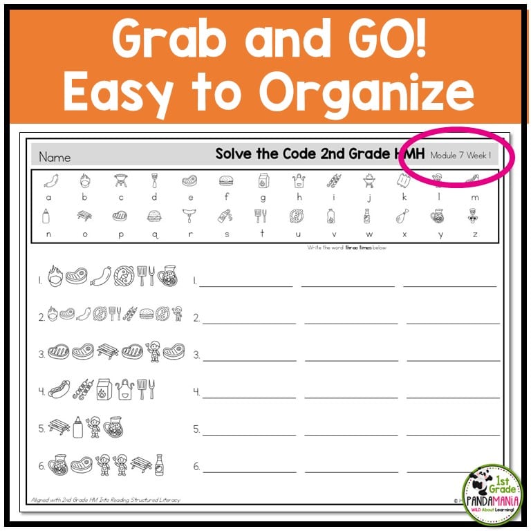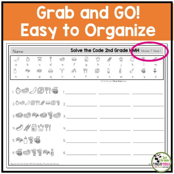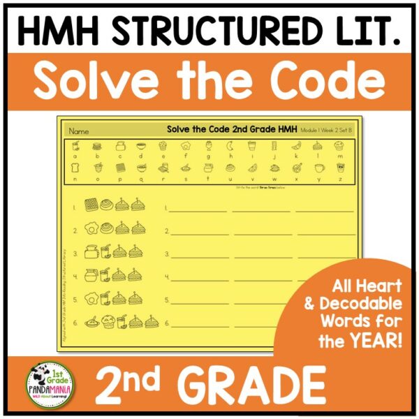 This Solve the Code center is a resource that your students will use all year long! Included are all HMH Into Reading Structured Literacy 2nd grade irregular, decodable, and review words by module and week. These words are organized by modules 1-12. Print and organize by weekly lessons or modules. Just grab and GO! There is a different code for each of the 12 modules for students to solve.