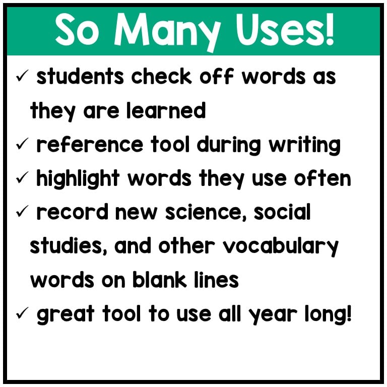 Click and Go! Table of Contents Included! These words are organized by modules and weeks. Print and file by the weekly lesson. Just grab and go!
