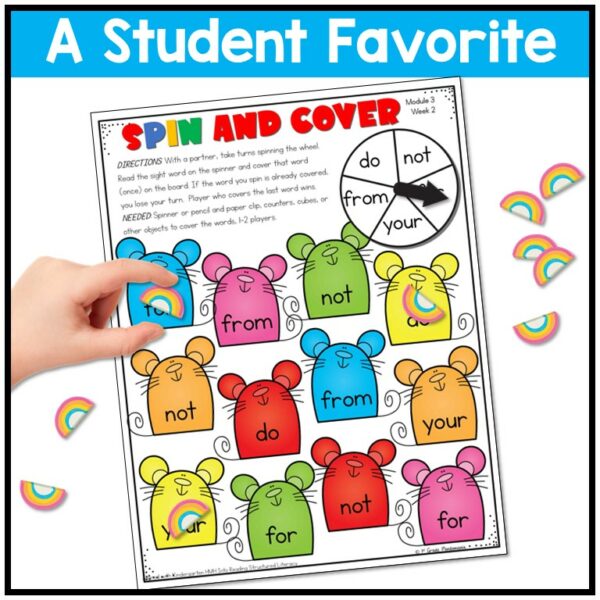 This HMH Into Reading Kindergarten sight word (high-frequency word) colorful center is a resource that your students will use all year long! Included are all HMH Into Reading Kindergarten High-Frequency sight words for your students to spin and cover at centers to reinforce their weekly sight words. These words are organized by modules (1.1, 1.2, 1.3 through 9.3). Print and file by the weekly lesson. Just grab and go! Spinner/pencil and paper clip and items to cover words needed.