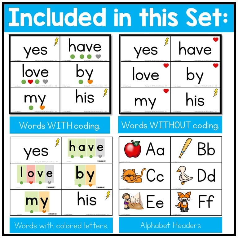This product is aligned with HMH Into Reading Structured Literacy for Kindergarten and included heart words, temporary heart words and flash words.