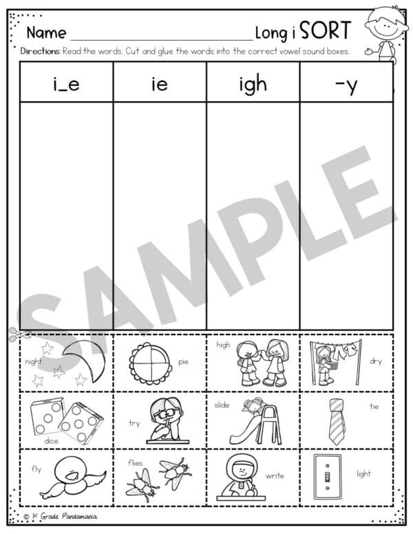 These Targeted Phonics long i vowel seatwork activities will keep your students practicing their long vowel blending and decoding skills all year long. Use for morning work, in an interactive notebook, as a Must Do or in a center during guided reading time. Many activity sheets are leveled (#1, #2 etc.) for differentiated practice. There are 32 pages of fun and engaging long vowel sound practice activities! Some are paper/pencil, coloring and others are cut and paste matching and could be used in an interactive notebook for phonics. Perfect for K-2.