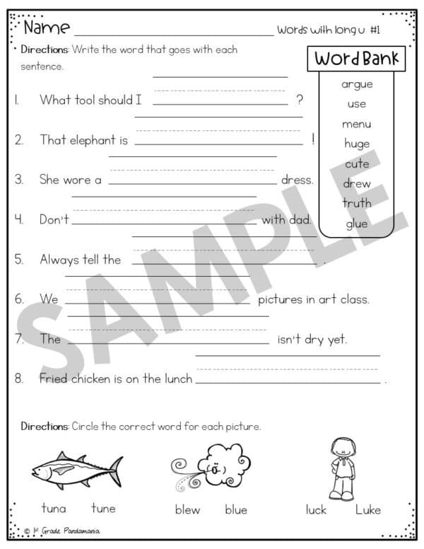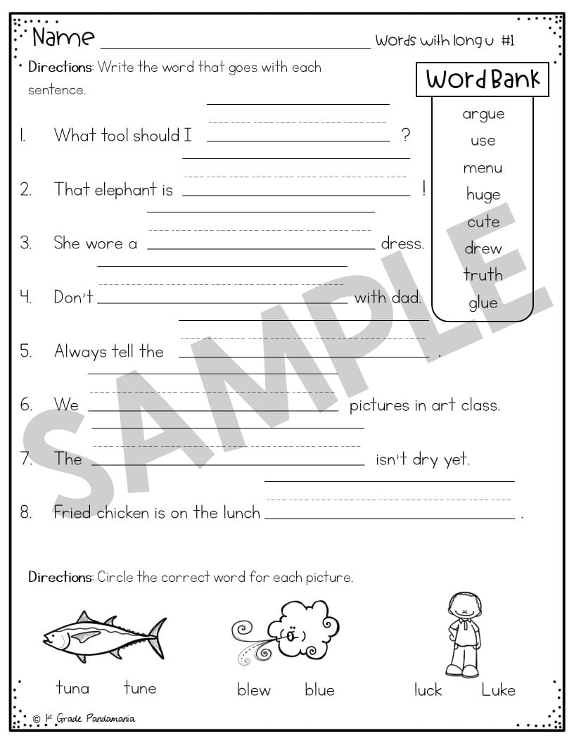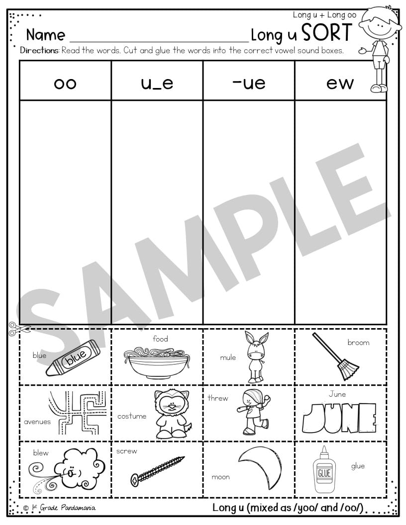These Targeted Phonics long u and oo vowel seatwork activities will keep your students practicing their long vowel blending and decoding skills all year long. Use for morning work, in an interactive notebook, as a Must Do or in a center during guided reading time. Many activity sheets are leveled (#1, #2 etc.) for differentiated practice. There are 32 pages of fun and engaging long vowel sound practice activities! Some are paper/pencil, coloring and others are cut and paste matching and could be used in an interactive notebook for phonics. Perfect for K-2.