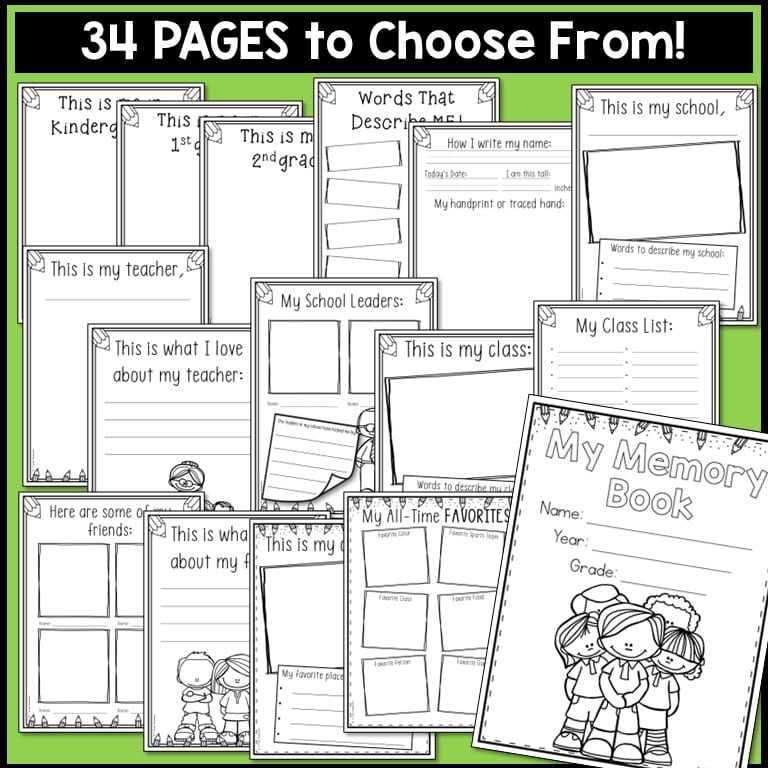 Your students will remember important events from the school year with this engaging 34 page Memory Book (year book) with autograph page, full of writing and drawing activities. Just pick the pages that are best for your class. Perfect for grades kindergarten, 1st grade and 2nd grade!