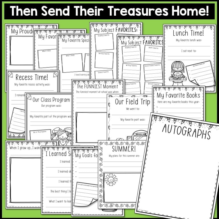 Take individual pictures, pictures with you and each student and a picture of the class to glue into their memory books. OR just have them draw those pictures! It will be a wonderful memory book for them to cherish for years.
