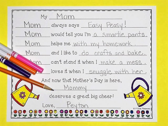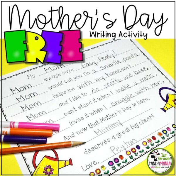 This sweet Mother’s Day Writing activity will be cherished by your students’ mother figures forever with your students’ honest, sweet feelings about their moms. Blanks are left for Mom, Mother, Mommy, Grandma, Grandmother, Nana, or whoever their mother figure is for Mother’s Day. Now with a FILLABLE pdf option!