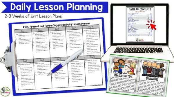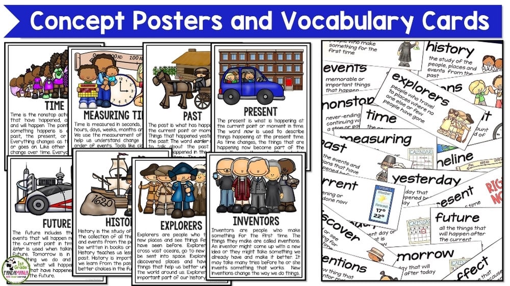 This comprehensive packet is aligned with the national social studies standards. It includes the topics of the present, past, future, history, heroes, inventors, and explorers. This packet is organized in a low prep and easy to use printable format.