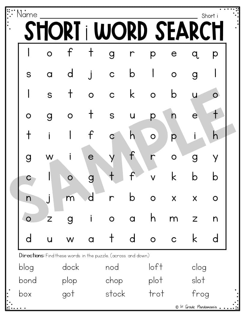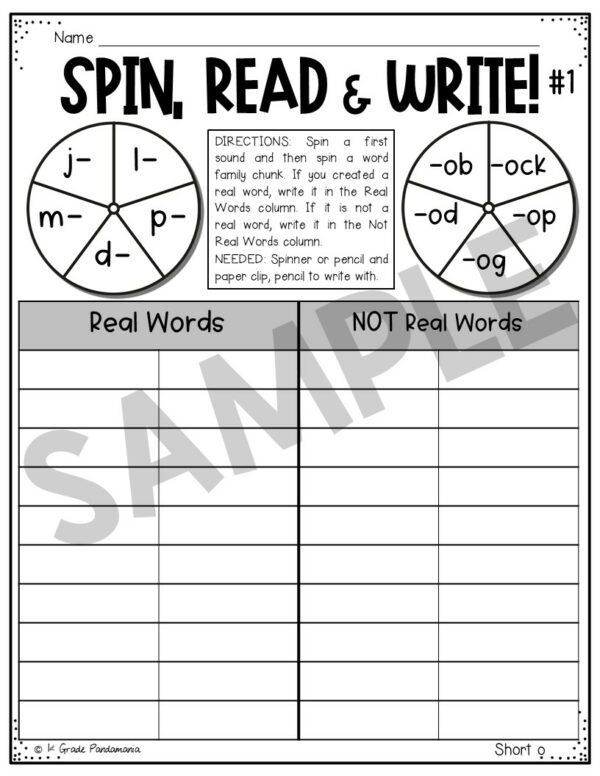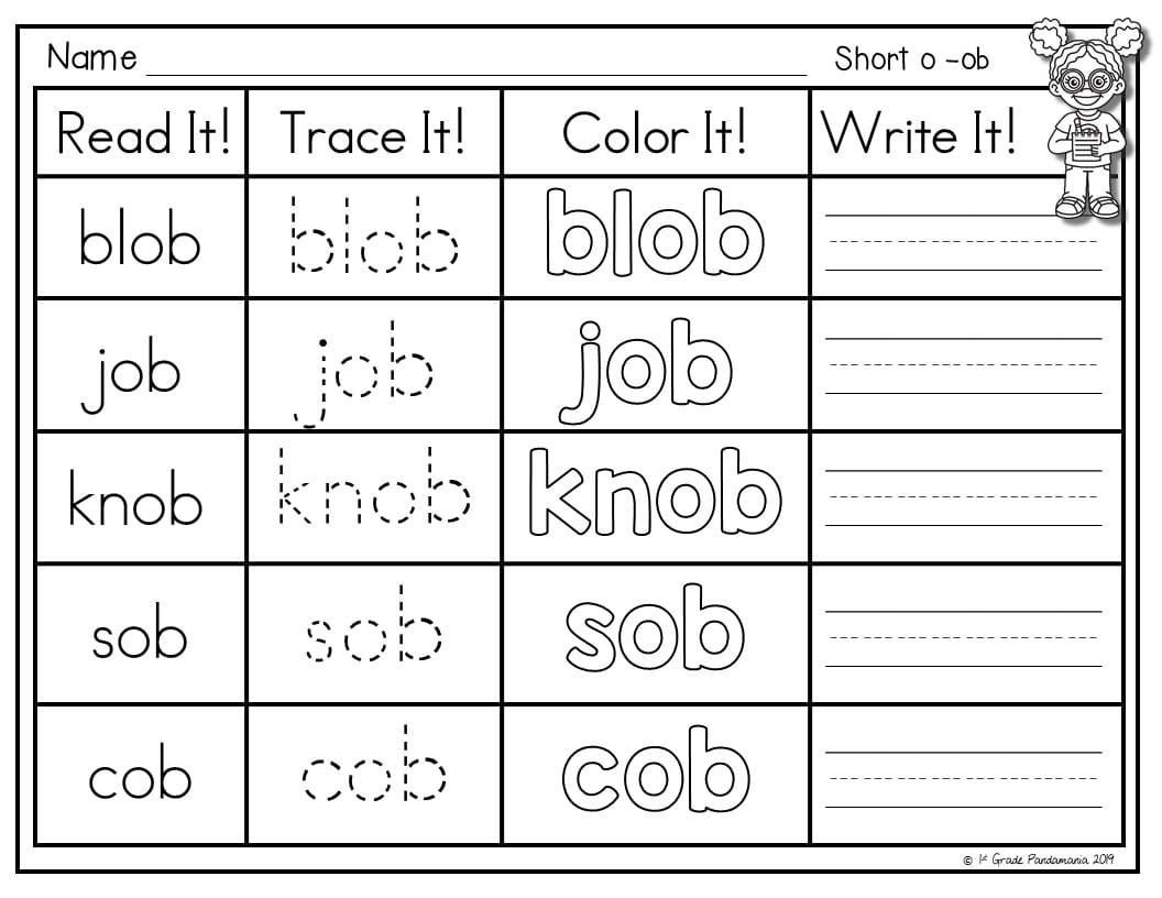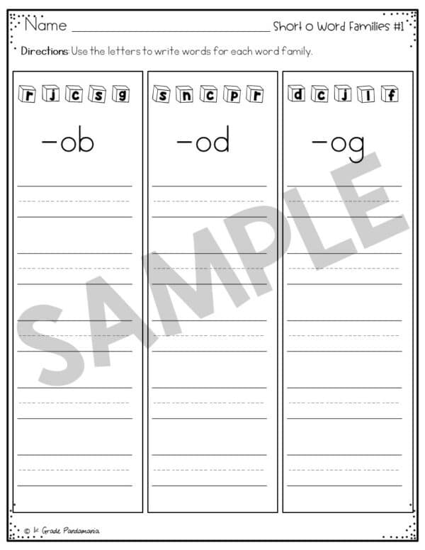 Short o Worksheets Word Families Included: