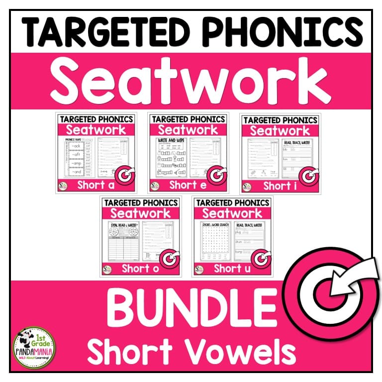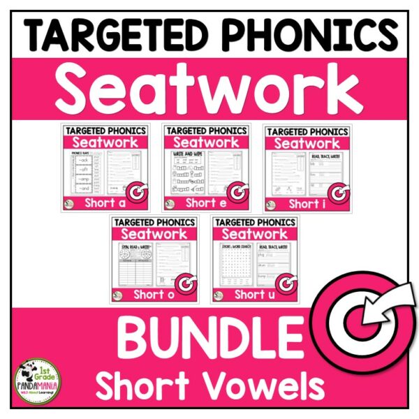 This Targeted Phonics Short Vowel Seatwork BUNDLE includes 288 pages of fun and engaging short vowel seatwork activities. Some are paper/pencil, coloring and others are cut and paste matching and could be used in an interactive notebook for phonics.
