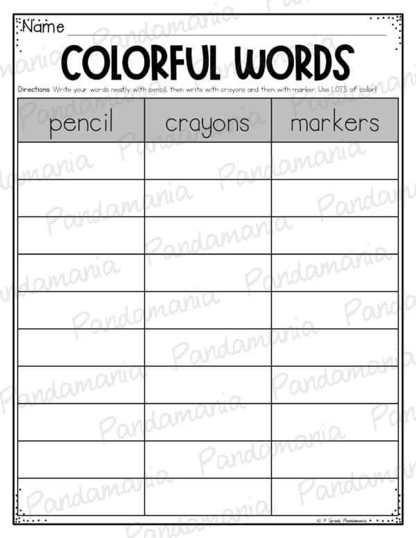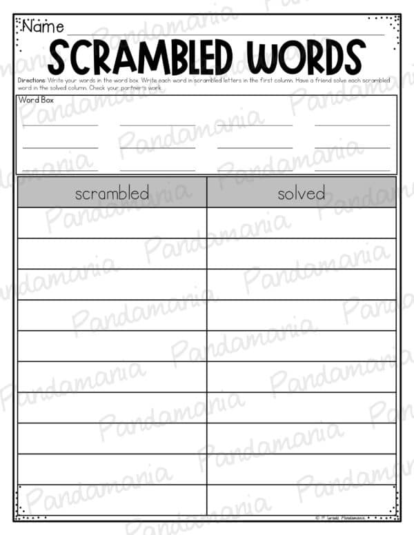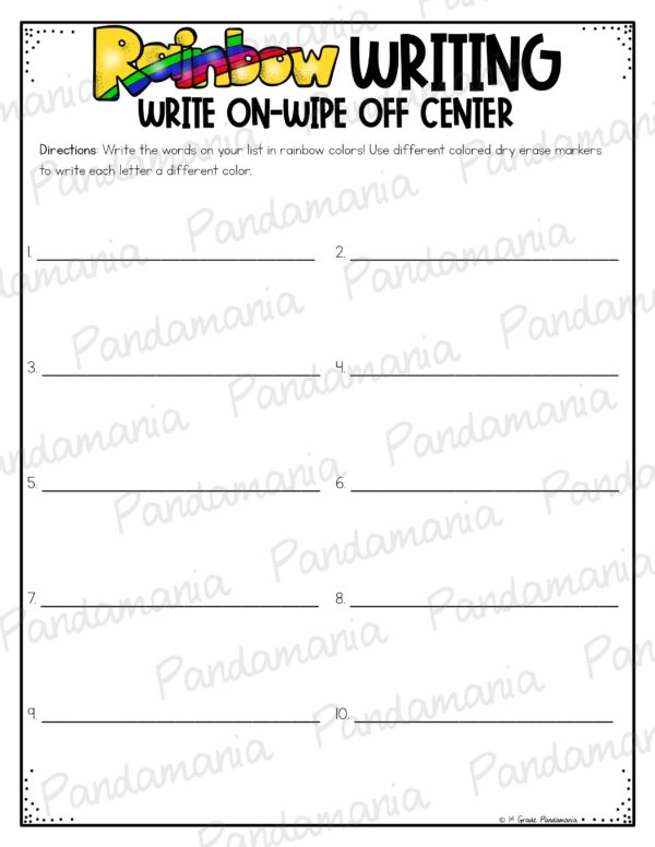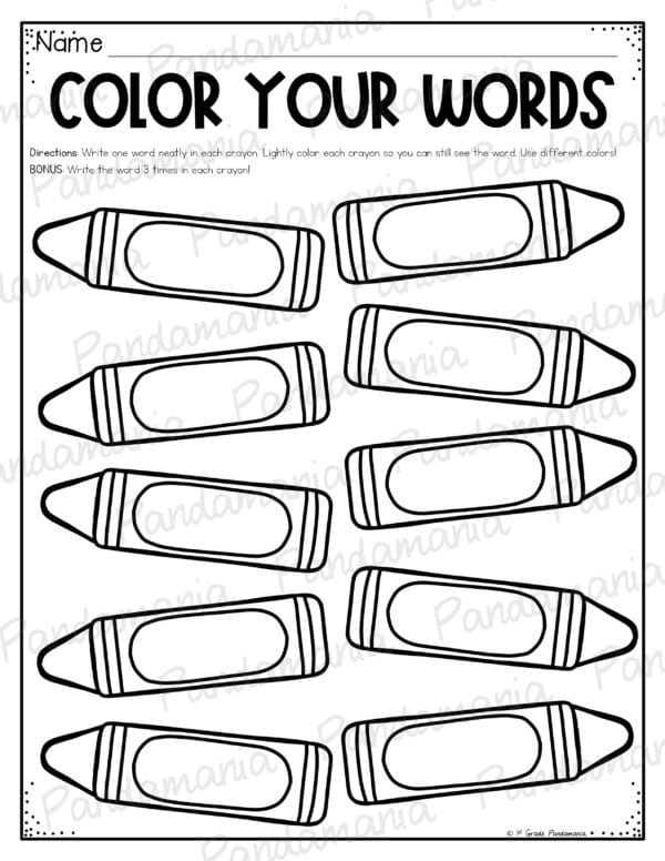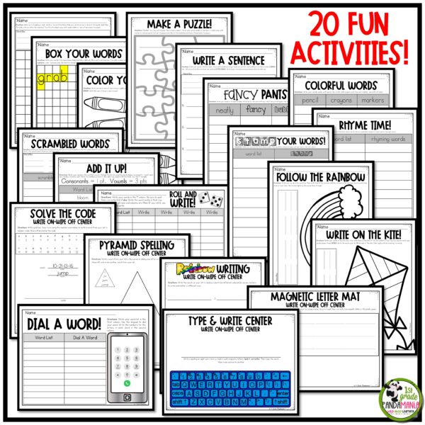 These spelling or sight word activities can be used with any list of 10 words. Just have students (or teacher can) add 10 spelling words, sight words, or vocabulary words, and watch them have fun practicing and reinforcing their skills.